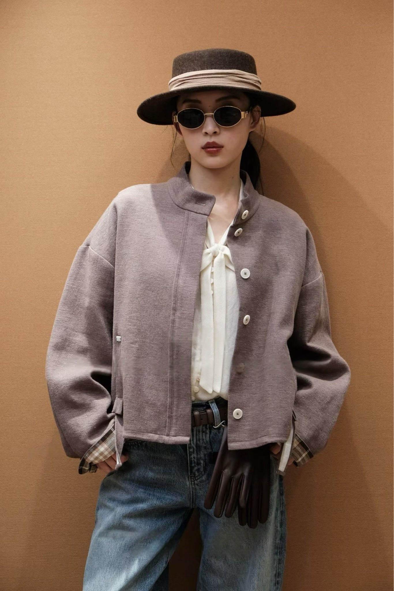 Modern Silhouette: The clean, structured lines and sophisticated mandarin collar create a polished, contemporary look that stands apart from traditional blazers or cardigans.