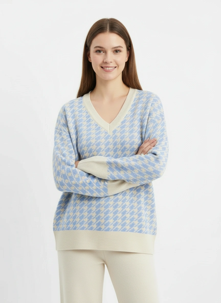 Elevate your everyday rotation with this light blue v neck sweater and pant set, a refined pairing that balances comfort with polished aesthetics. The v neckline creates a flattering vertical line while the quality knit sweater maintains its softness and shape through repeated wear. Light blue delivers a fresh, approachable tone that complements all skin tones and pairs seamlessly with your existing accessories and layering pieces. The coordinated pants feature a tailored cut that works in professional settings or casual environments. Wear as a complete set for effortless coordination or separate each piece to maximize styling flexibility with your wardrobe staples. This set proves that coordinated dressing need not feel matchy—instead, it offers practical elegance for the discerning dresser.