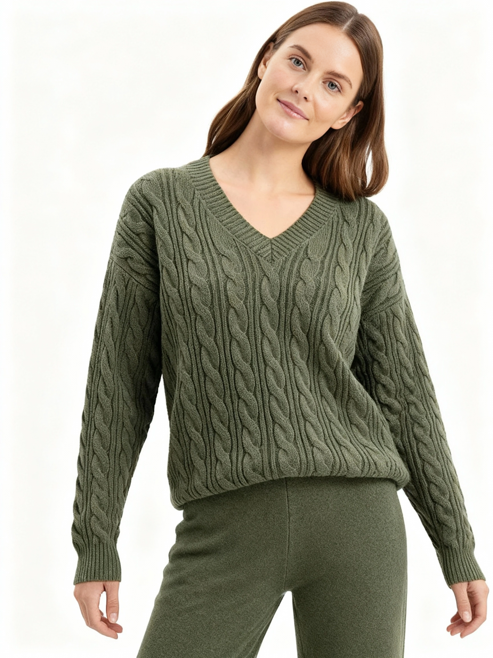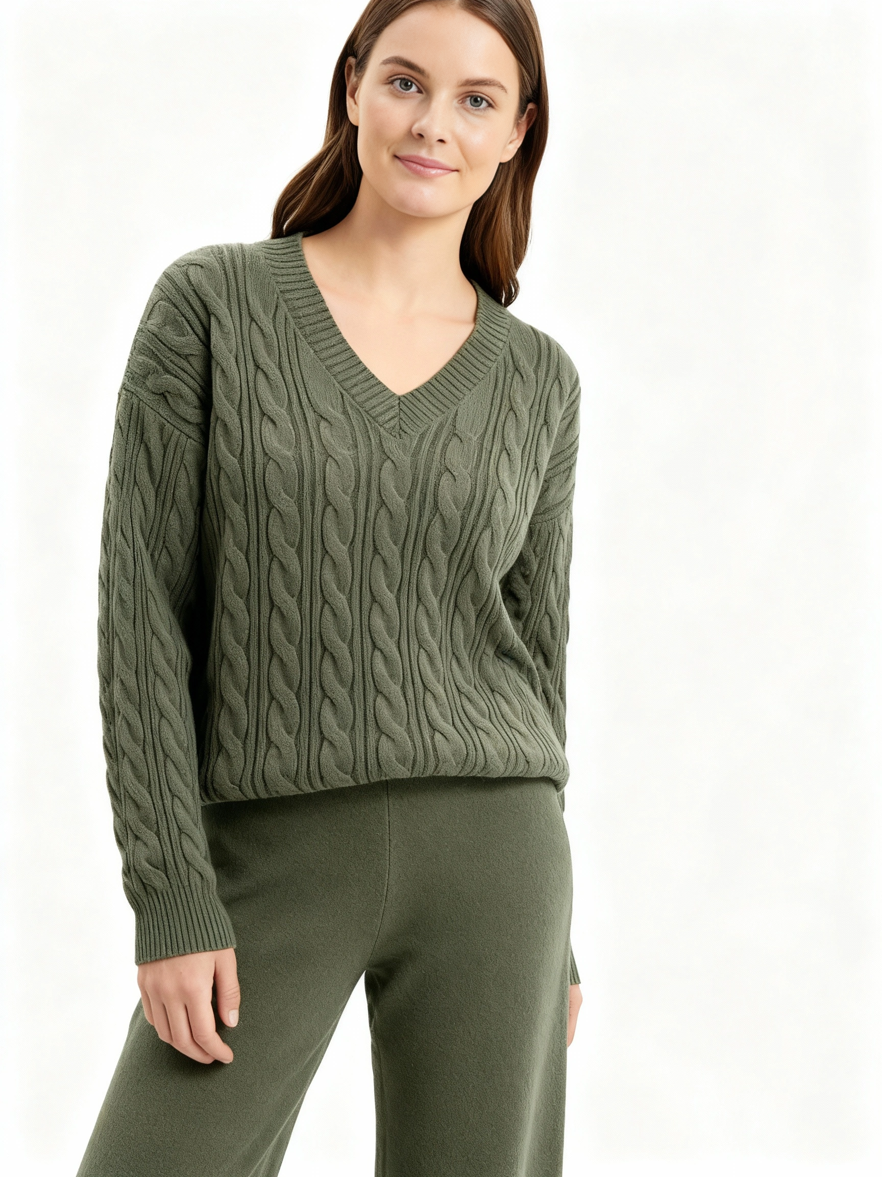 Achieve refined elegance with this dark green v neck sweater and wide leg pants ensemble, a sophisticated pairing that balances comfort with polished aesthetics. The flattering v neckline elongates your frame while the quality sweater knit maintains its softness and shape through repeated wear. The expansive wide leg silhouette creates a contemporary line that flatters diverse body types while deep green grounds the look in classic sophistication. Quality construction guarantees durability and color retention through frequent styling and cleaning. Wear as a coordinated set for cohesive impact or separate each piece to maximize versatility with existing wardrobe basics. This ensemble proves that jewel-tone dressing, when executed with thoughtful tailoring and quality fabrication, delivers enduring sophistication suitable for professional and social environments alike.