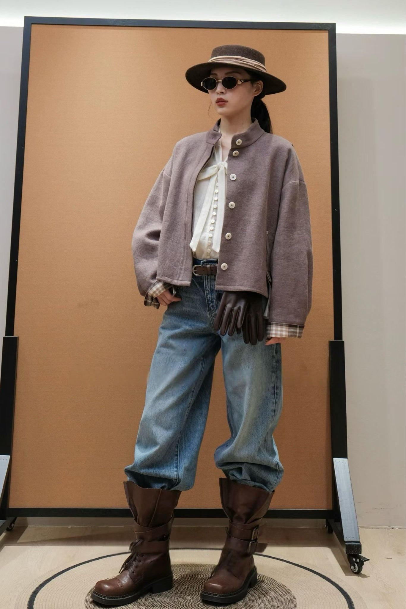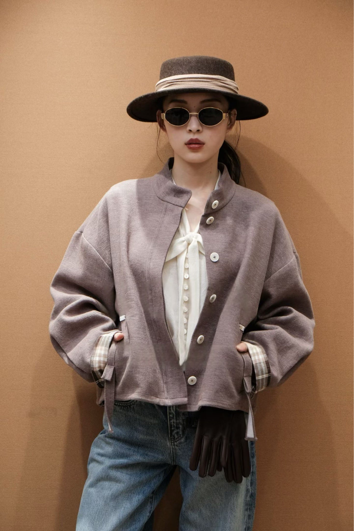 Modern Silhouette: The clean, structured lines and sophisticated mandarin collar create a polished, contemporary look that stands apart from traditional blazers or cardigans.